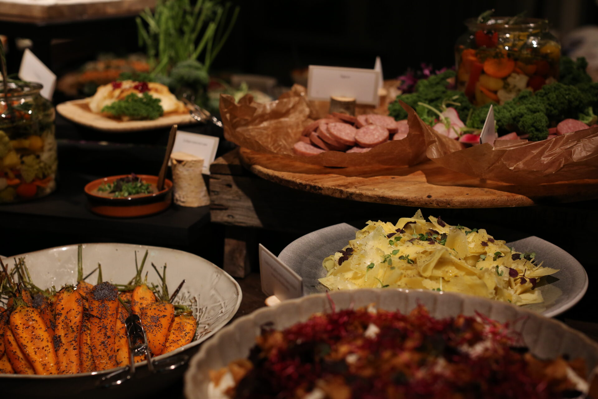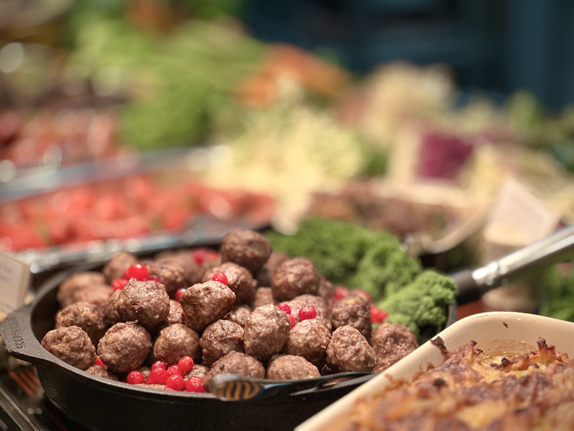 Den rykande heta glöggen serveras utomhus vid den brinnande Ofyren innan julbordets start, självklart med något gott till. Sen till bords blir ni serverade tre sorters sill med klassiska tillhör som sharing. Kallskuret och ett urval av olika delikatessostar från lokala mejerier hämtar ni själva i egen takt och smak från det stora buffébordet inne i Gillet. I hjärtat av restaurangen berättar gärna vårt härliga köksteam gärna mer om dom varma rätterna på den varma buffén.