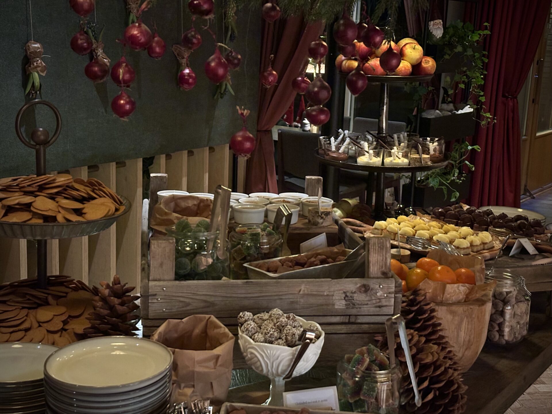 Precis när ni mätta och belåtna lutat er tillbaka så dukas dessertbordet upp och vi lovar att det finns plats för det också. Ni får njuta av en makalös blandning av klassiskt, sött, salt, choklad, maräng och frukt, en perfekt avslutning på julbordsmiddagen kanske med en välsmakande avec från baren?